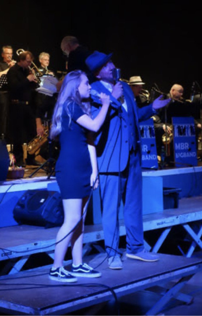 Am letzten Samstag, dem 14. April 2018, widmeten die Musikerinnen und Musiker der MBR-Bigband bereits zum 6. Mal ein Konzert in der Radsporthalle Mainz-Hechtsheim dem Benefizprojekt „Music for ME“ der Lost Voices Stiftung. Die MBR-Bigband unter der Leitung von Stefan Scriba und Sänger Dirk Kubitschek begeisterten mit ihrem breiten Repertoire von Swing-Klassikern über Latin Jazz, Soul und Funk bis zu Rock- und Pop-Adaptionen. Da viele Besucher regelmäßig bei den Konzerten der Bigband dabei sind, hatte man sich entschlossen, viele neue Stücke in die Setlist aufzunehmen. Viel Arbeit also – die sich aber gelohnt hat. Eine unerwartete Überraschung hob sich die Musikformation für das zweite Set auf: Dirk Kubitscheks Tochter Selma war der Überraschungsgast. Mit kraftvoller Stimme sang sie zwei Stücke von Amy Winehouse. Und als Zugabe schließlich gemeinsam mit ihrem Papa das schon von Frank Sinatra mit seiner Tochter gesungene „Something Stupid“. „Es war zum Weinen schön“, sagte Anne Frodl am Ende des Konzertes. Dieser emotionalen Momentaufnahme ist kaum etwas hinzuzufügen.
